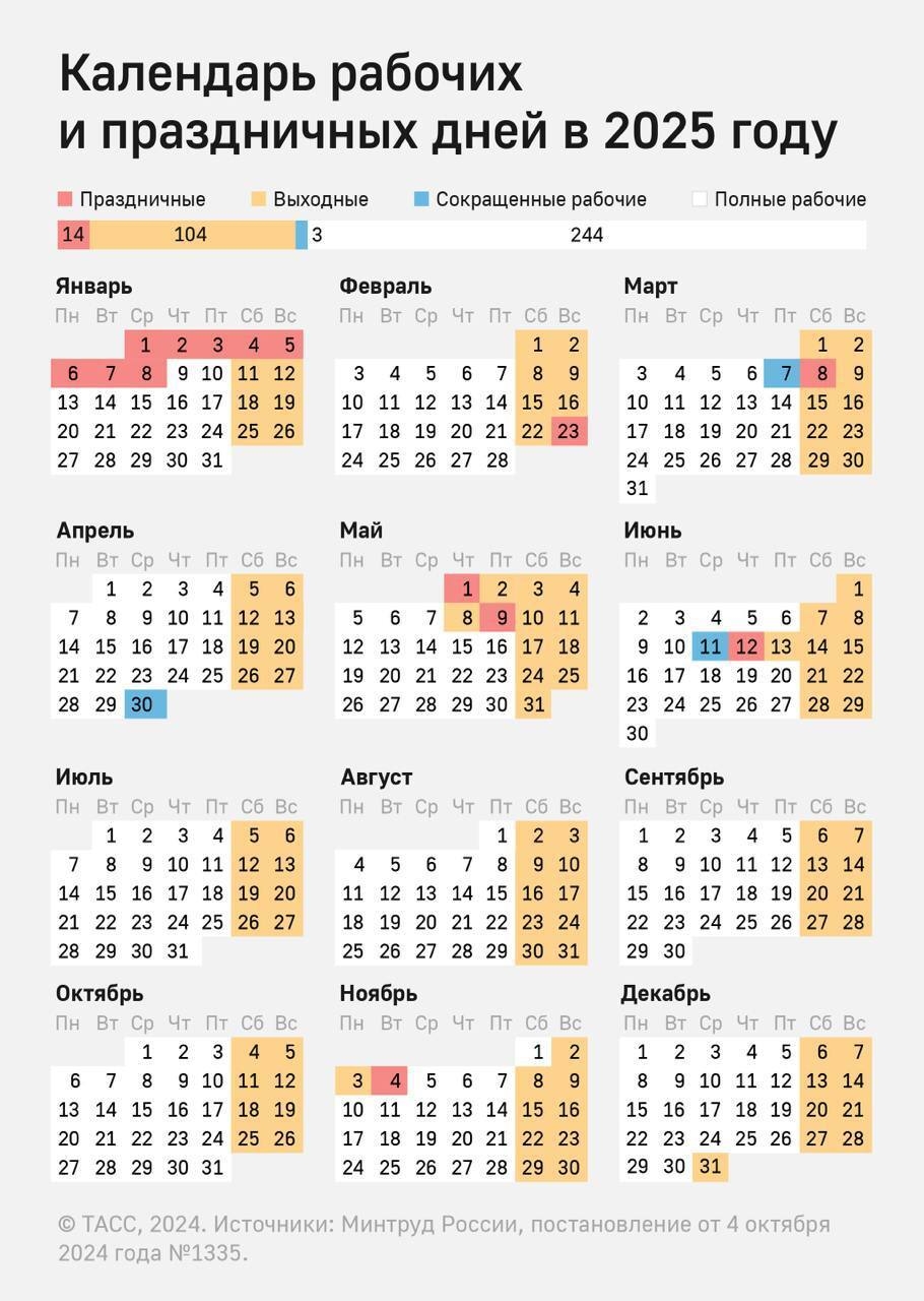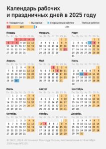Календарь рабочих и праздничных дней в 2025 году